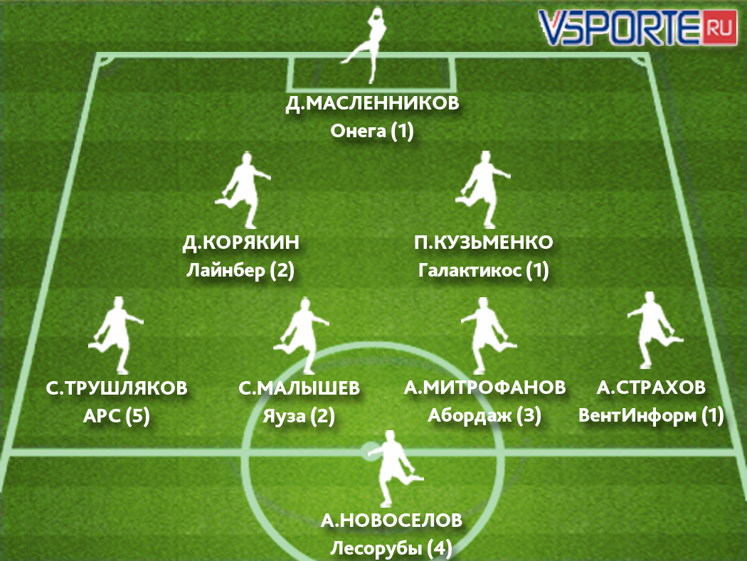 «Галактикос» же в воскресенье камня на камне не оставил от «Сирени», хотя от команды Владимира Патшина, собравшейся хоть и без своего капитана, зато с пятью заменами, можно было ожидать боя. На беду «сиреневых» в этой встрече вернулся на газон не игравший два месяца Павел Кузьменко. В начале сезона признанный лидер «галактических» не был похож на себя, в восьми встречах сделав лишь одну голевую передачу, но после паузы он сразу же оформил дубль, а партнеры поддержали еще тремя мячами, обеспечив к концу матча на табло «технический» счет – 5:0. «Галактикос» вплотную подбирается к «Сходне», а «Лесорубы» уступают ему всего одно очко и располагаются шестыми. В 2016 году борьба обещает быть не менее жаркой.