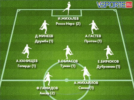 Из тройки лидеров бомбардирской гонки сразу два голеадора «промолчали», причем матчи в итоге закончились не самым лучшим образом для их команд. Дмитрий Токарев и его «Легион» упустил победу над «Фортуной», а химкинский «Новатор» с Егором Коростелевым в составе и вовсе вновь остался без очков в матче против «Протона«. А вот Фарид Гамидов, нападающий «Ансара», не только сумел пополнить свой лицевой счет, трижды поразив ворота «Молнии», но и стал настоящим героем встречи, ведь во многом именно благодаря нему новичку Северной лиги удалось набрать в этом поединке три очка.