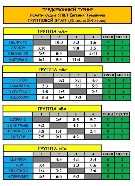 Итоги предсезонного турнира памяти судьи СЛФЛ Евгения Туманина.