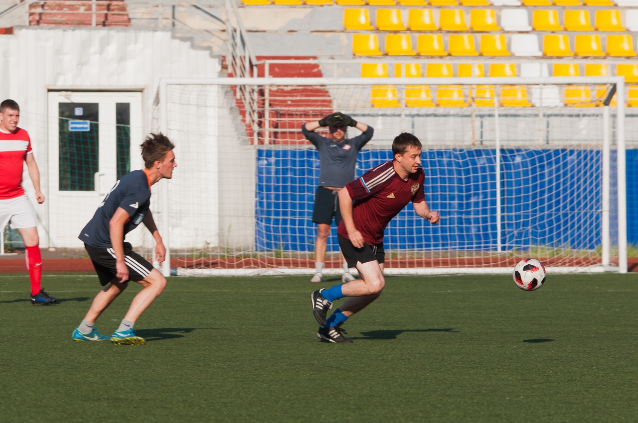Словно предвосхищая грядущие свершения и утоляя жажду болельщиков до красивой игры, «Мечта» во главе с Жоголевым бросился вести игру. «Эльдорадо» только-только начинал вкатываться в темп игры, избранный соперником, как тут же получил опаснейший выстрел в собственные ворота. Который с катастрофической скоростью обернулся в гол. Кирилл Сажнев принял мяч на правом фланге, сместился к центру, а затем потрясающим по силе и точности выстрелом едва ли не с центра поля поразил левый верхний угол ворот Шувалова. 1:0. Крайне высокий и максимально активный прессинг со стороны «Мечты» отразился не только в быстром голе. Футболисты в темно-синих футболках попросту сминали соперника на старте матча. Казалось, что каждый игрок команды Юрия Нестерова считал своей личной обязанностью забить. Град ударов обрушился на оборону «Эльдорадо» в буквальном смысле со всех позиций. Кирилл Сажнев стремился развить успех, Олег Толмачев предпринимал попытки пробить оборону, а упомянутый выше играющий менеджер пробовал свои силы в дальних ударах. Впрочем, оборона, возглавляемая Владиславом Колесниковым, удары сдерживала максимально хладнокровно. Стремительно развивающаяся динамика атак любой степени сложности сошла на нет и уже «Эльдорадо» начал инициировать свои попытки восстановить паритет в счете. Наступательные действия возглавил Сергей Букатин. Новоявленный лидер «красно-белых», сменивший клубную прописку не так давно, в данном отрезке времени был, в прямом смысле слова «везде». Полузащитник выигрывал верх, участвовал в подборах и разгонял атаки самыми разными способами. Однако, претендовать больше, чем на обострение ситуации пока футболист не мог – Антон Сарычев выжигал свою зону обороны, мешая конструктивному развитию. Постепенно на авансцену снова вышел Анатолий Жоголев. Быстроногий вингер без тени смущения начал демонстрировать собственную техническую оснащенность на левом фланге, заставляя изрядно понервничать оппонентов. До удара дело, впрочем, не доходило. На закате стартового отрезка тайма рисунок игры приобрел вполне себе различимые очертания. «Эльдорадо» усилиями Букатина и Колесникова разыгрывали футбольный вид коммуникации более осознанно, нежели «Мечта». «Красно-белые» использовали собственное чувство паса гораздо более бережнее, выводя на перспективное пространство своих исполнителей. В то время как «темно-синие» создавали свои моменты, по большому счету, за счет индивидуальных действий. Так, например, второй удар в створ ворот случился во многом благодаря технике Кирилла Сажнева.