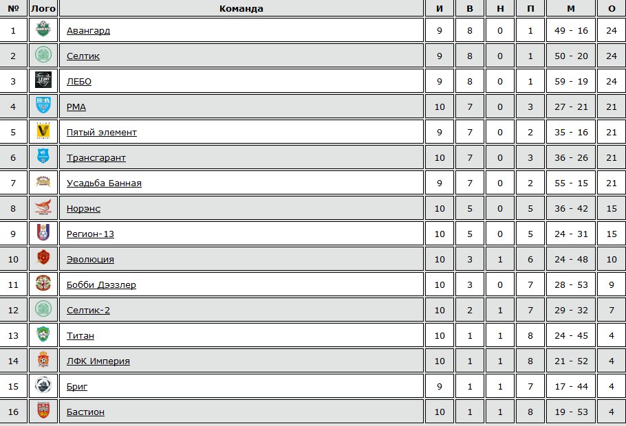 Здесь же и «Авангард» с «ЛЕБО». Обе команды продолжают демонстрировать свой класс соперникам, уровень которых явно ниже. Есть, правда, одно существенное отличие. «Красные» продолжать экзаменовать команды из нижней части таблицы вплоть до «Восточного классико» в 15 туре, а «кофейных» ждет самая тяжёлая часть сезона. Уже в субботу «Пятый Элемент», а дальше понёсется — «Усадьба», «Регион», РМА» и два «Селтика» на закуску. Сыграли команды в эти выходные тоже по-разному. Команда Евгения Джураева встречалась с «Бастионом». Проблем у последних немало. Вроде бы и «Империю» обыграли, но с каким трудом. Команде Антона Понуровского сейчас не позавидуешь. Последнее место и календарь, который не хочет радовать. Если уже начинать подходить к противостоянию «Авангарда» с «Усадьбой», то в глаза бросается главное отличие между командами. Спокойствие у «красных» и отсутствие такового у «банщиков». Спокойствие было и в этом туре. «Авангард» спокойно забил три, продолжил контролировать ход матча, но явно не спешил форсировать события. В этом не было никакого смысла. Рабочие и уверенные 3:0. Без лишних слов и эмоций. Дважды Колыванов и Харламов внесли свои фамилии в протокол.